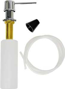 This Danco chrome soap dispenser with curved nozzle provides an elegant touch for a bathroom or kitchen installation. Add convenience to your kitchen with this dispenser as it comes with a 48 in hose that will fit a 1 gal soap or 12 oz lotion bottle discreetly hidden underneath the sink to minimize refills. This dispenser can also be filled from the top if used with the included under counter plastic soap container. The longer shank fits most counter tops, including granite and marble.