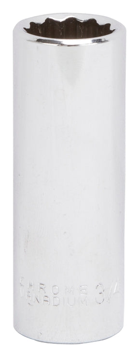 Vulcan MT6528525 Drive Socket, 3/4 in Socket, 1/2 in Drive, 12-Point, Chrome Vanadium Steel, Chrome