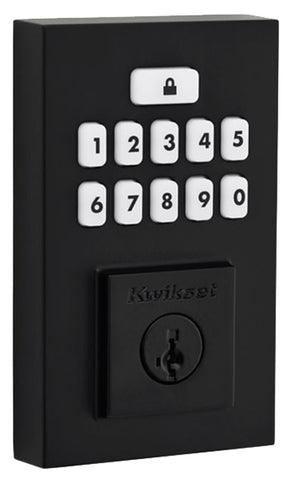 Kwikset 260 Smartcode Deadbolt, Electronic, Contemporary, 2, Power Source: Battery, 1, KW1 Keyway, Keyed One-Side Key, SmartKey, Round Corner Strike, 1-1/8 x 2-3/4 in Strike, Adjustable Backset, 2-3/8 to 2-3/4 in Backset, 1 x 2-1/4 in Faceplate, 1 in, 1 in, 2-1/8 in, 1-3/8 to 1-3/4 in, Reversible, 50, Commercial/Residential: Residential, Yes, Yes, Matte Black, Dimensions: 1-3/16 in L x 2-13/16 in W x 4-29/32 in H, Includes: (2) Keys and Round Deadbolt Strike