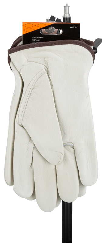 Cream color, grain leather driving gloves feature Keystone thumb and shirred elastic back. Size: M.