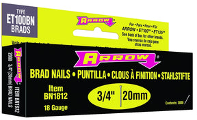 Arrow BN1812BCS Brad Nail, 3/4 in L, Steel, Plain, Smooth Shank is backordered and will ship as soon as it is back in stock.
