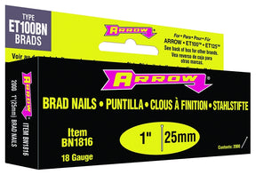 Arrow BN1816BCS Brad Nail, 1 in L, Steel, Plain, Smooth Shank is backordered and will ship as soon as it is back in stock.