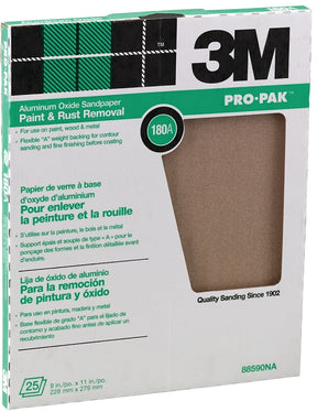 3M 88590 Sandpaper Sheet, 11 in L, 9 in W, Fine, 180 Grit, Aluminum Oxide Abrasive, Cloth Backing