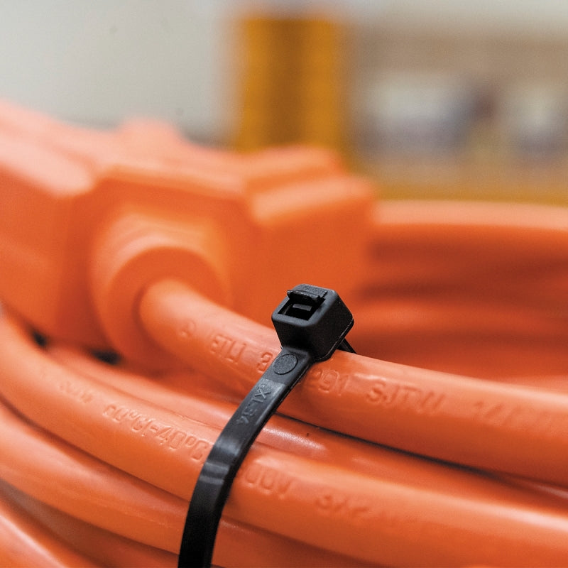 Gardner Bender's Patented double-lock cable ties are designed for strength, durability and reliability. Ideal for all bundling purposes; wires, cables, hoses or ducts, you name it and these ties will bundle it. Made from durable 100% nylon 6/6 material, these ties feature our patented double-lock design, with locking teeth on both sides of the tie and at the head ensuring a stronger connection and 50% greater tensile strength than the industry standard. The bent tip ensures easy insertion into the tie head while close serrations on both sides of the tie promote precise adjustment. The smooth radiused edges ensure easy "slip" as you tighten while finger grips on the end ensure a secure and comfortable grip when hand tightening.