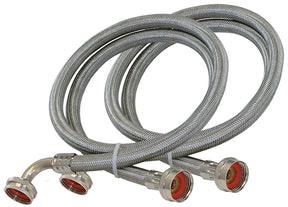 One-pair 3/8 in stainless steel braided full flow high pressure hoses. Nickel-plated brass nut with stainless steel ferrule. Working temperatures of 15 to 158 deg F. For residential use only. 3/4 in FHT x 3/4 in FHT. 1 year manufacturing warranty.