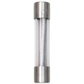 Glass tube. Plated brass end caps. 1/4 in x 1-1/4 in. 250 VAC rating maximum. UL listed.