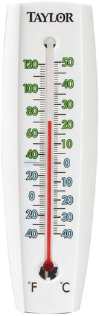 A modern twist on a timeless classic, this TAYLOR window thermometer adds style and functionality to any home, backyard or garage. The thermometer's sleek, curved design features bold, blue and green numerals to provide accurate readings from -40 to 120 deg C and -40 to 50 deg C. Constructed with weather-resistant and rustproof material, this wall thermometer is compatible for both the indoors and outdoors and can be used throughout all four seasons.