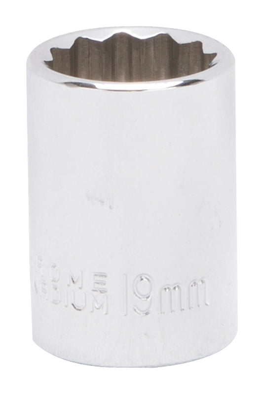 Vulcan MT6530224 Drive Socket, 19 mm Socket, 1/2 in Drive, 12-Point, Chrome Vanadium Steel, Chrome