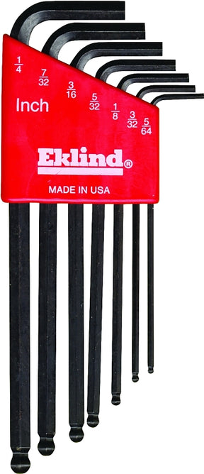 Made with Eklind alloy steel that has been heat-treated for optimum strength and ductility with a black finish to resist rust. Includes inch sizes: 5/64, 3/32, 1/8, 5/32, 3/16, 7/32, 1/4 and molded plastic holder. Carded.