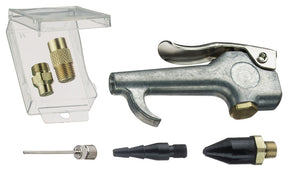 - Complete, all-purpose blowgun with four interchangeable nozzles for cleaning and inflating
