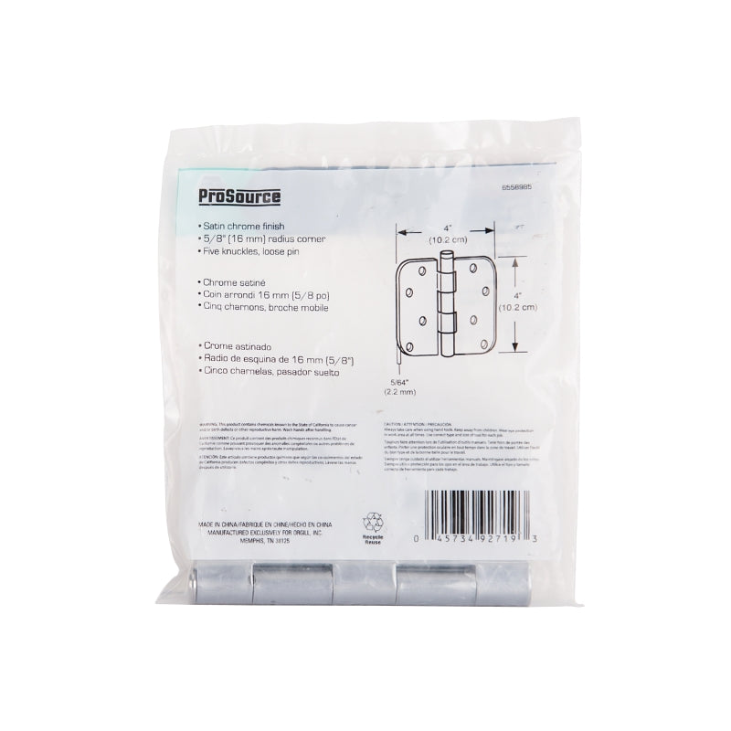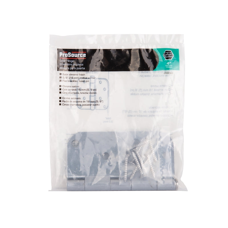 ProSource 20348SCX Door Hinge, Steel, Satin Chrome, Loose Pin, 180 deg Range of Motion, Screw Mounting