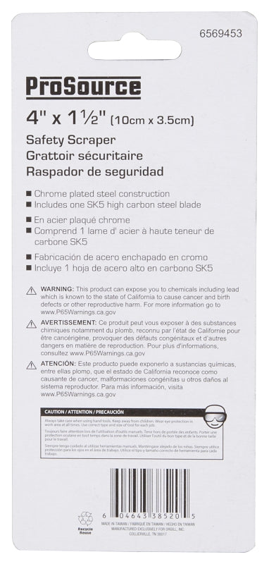 ProSource 38520 Scraper, 1-1/2 in W Blade, Full Tang, Razor Blade, HCS Blade, Steel Handle, 4 in OAL