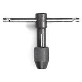 Designed for use with taps and on many other tools to be turned by hand. Easy adjustment and tightening quick turn. Additional holding jaws are recessed inside hole for gripping onto smaller sized taps. T-handle extends full length in either direction for more leverage.