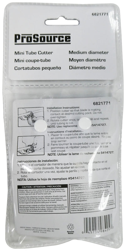 ProSource TCM-120B3L Mini Tubing Cutters, 7/8 in Max Pipe/Tube Dia, 1/8 in Mini Pipe/Tube Dia is backordered and will ship as soon as it is back in stock.