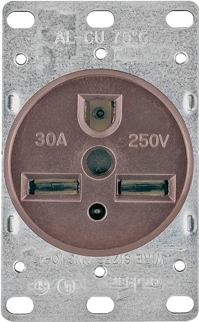 Arrow Hart 1234-BOX Power Receptacle, 2 -Pole, 250 V, 30 A, NEMA: NEMA 6-30R, Brown