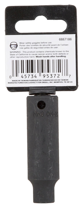 Vulcan MT6580138 Deep Impact Socket, 8 mm Socket, 3/8 in Drive, Deep Drive, 6-Point, Chrome Molybdenum Steel