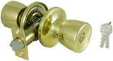 For keyed exterior doors. Both knobs lock or unlock by key outside or turn button inside. All metal components. Solid steel latch assembly. Rust-resistant solid brass keyway for more security. Seamless 1-piece knob for extra strength. Square spindle for right or left handed installations. Easy installation. Cylinder drilled for construction keying. Door prep 2-1/8 in Crossbore, 1 in Edge Bore, 1 x 2-1/4 in Latch Face. Fits 1-3/8 to 1-3/4 in doors.