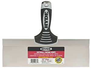 12 in stainless joint knife for drywall joint taping, finishing and patching with a soft-grip handle and our patented Hammer Head end. Stainless steel blades designed to pro specifications. Rivet-free construction will not loosen with use.