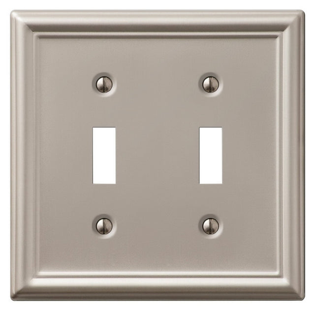 Amerelle 149TTBN Wallplate, 4-7/8 in L, 4-15/16 in W, 2 -Gang, Steel, Brushed Nickel
