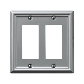 AmerTac Chelsea 149RRBN Wallplate, 4-7/8 in L, 4-15/16 in W, 2 -Gang, Steel, Brushed Nickel