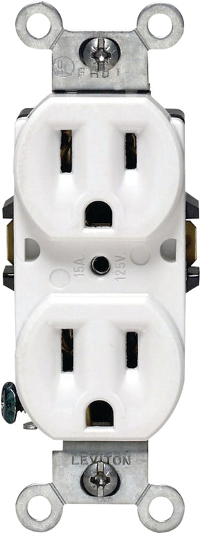 Leviton 218-05248-WCP Duplex Receptacle, Thermoplastic, White, 2-Pole, 15 A, Push-In, Side Wiring, 14 AWG Wire