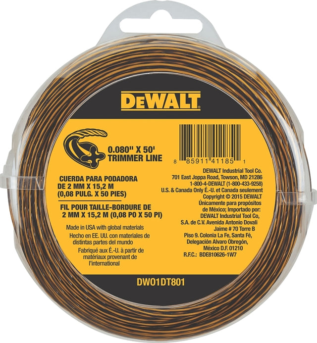 DEWALT DWO1DT801 Trimmer Line, 0.080 in Dia, 50 ft L, Yellow