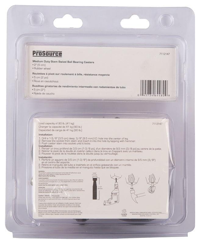 ProSource JC-D08-PS Swivel Caster, 2 in Dia Wheel, 2 in W Wheel, Rubber Wheel, Black, 90 lb, Steel Housing Material