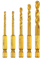 5-piece set include two 1/8 in, one 5/32 in, one 3/16 in and one 1/4 in drill bit.