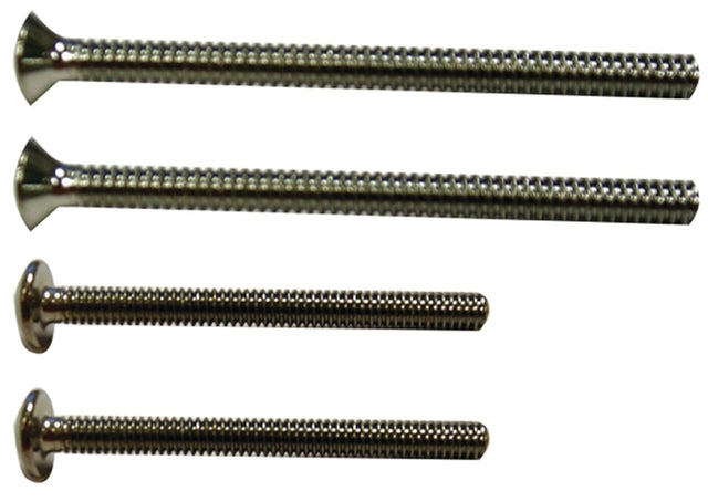 Install your faucet handle escutcheon plate with these flange screws for Moen and Delta. The screws come finished in chrome with a metal base material and have a 1/4 in. diameter. Using this kit will help you maintain a consistent tub trim appearance.