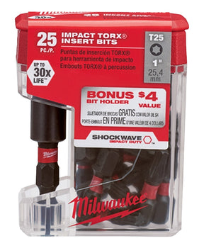 Milwaukee SHOCKWAVE 48-32-5016 Insert Bit, T25 Drive, Torx Drive, 1/4 in Shank, Hex Shank, 1 in L is backordered and will ship as soon as it is back in stock.
