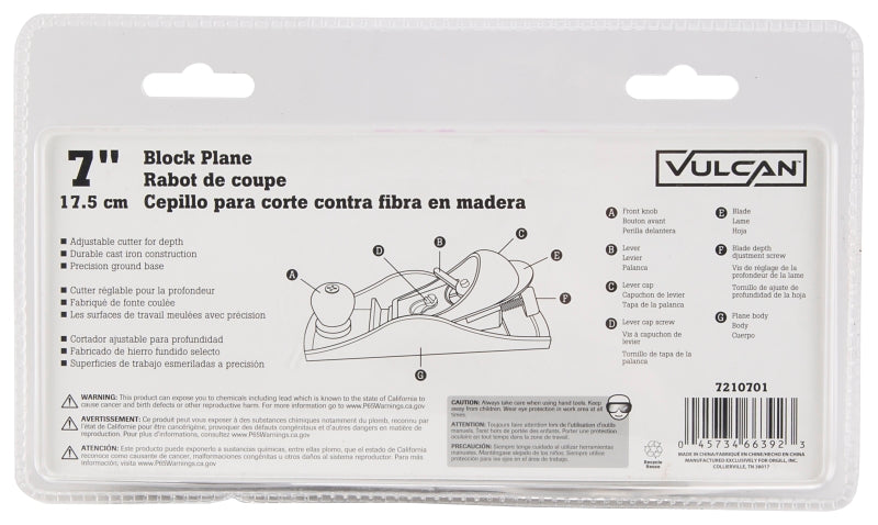 Vulcan JLO-064 Block Plane, 1-5/8 in W Blade, Alloy Steel Blade, Cast Iron Body, Front Knob Handle is backordered and will ship as soon as it is back in stock.