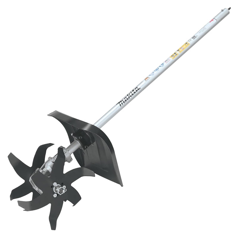 Makita is giving landscapers more options with both MM4 4-stroke engine and 18 V X2 LXT (36 V) cordless couple shaft power heads (sold separately) and the cultivator couple shaft attachment is the right accessory for use with this versatile system. It has a 9 in six tine steel blade for efficient rejuvenation of planting areas and has a compact design for work in tight spaces. It quickly attaches to the Makita power head for easy operation and the steel drive shaft is engineered for lower vibration and longer service life.