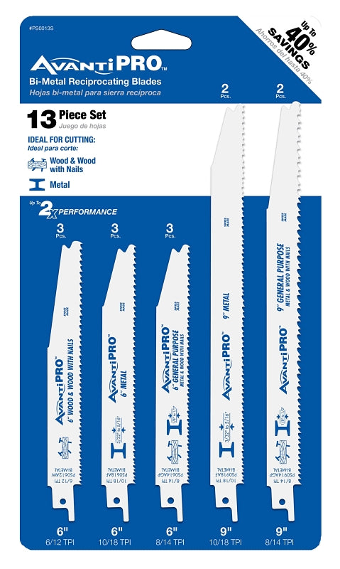 Avanti Pro PS0013S Reciprocating Saw Blade Set, 13-Piece, Bi-Metal