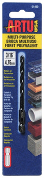 ARTU Drill Bit, Multi-Purpose, 3/16 in Diameter, Parabolic Flute, 1-7/8 in Flute Length, Quick-Connect Shank, 1-5/8 in Shank Length, Cobalt/Tungsten Carbide Cutting Edge, Chrome Vanadium Steel, 3-1/2 in Overall Length, Applicable Materials: Brick, Cast Metal, Ceramic Tiles, Concrete, Fiberglass, Glass, Granite, Hardened Steel, Hardwood, Marble, Masonry, Plexiglas, PVC, Softwood, Suitable for: Cordless Drills, Corded Drills, Drill Presses
