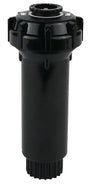 Toro Pressure Regulated Pop-Up Sprinkler, 1/2 in Connection, FNPT Connection, Fixed Nozzle, Nozzle Trajectory: 27 deg, Pop-Up Height: 3 in, 11-1/4 to 15 ft Operating, 4.33 gpm Flow Rate, 30 psi Pressure, ABS, Black, Dimensions: 4.88 in H x 2.06 in W x 2.06 in D