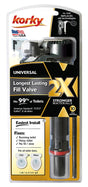 The Korky 2X long-life toilet fill valve is the longest lasting, most universal fill valve available. The proprietary Chlorazone II rubber formulation lasts two times longer than other fill valves and is backed by a 10 years warranty to hold up in the harshest environments. Designed to fix no fill, slow refilling, running and noisy toilets, the Korky 2X toilet fill valve is quieter than other fill valves and is ideal for toilets since 1994 (1.6 gpf or less). It is fully adjustable to prevent water waste in all toilets. The refill adjuster delivers the right amount of water to the bowl to maintain original performance. This toilet fill valve is easy to install and adjust; no tools are required. Simply remove your old fill valve or ballcock, insert your new Korky fill valve, adjust and you're done. The innovative twist-lock adjustment makes installation easy.