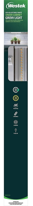 Westek Under Cabinet Grow Light, 120 V, LED Lamp, 90 CRI, 4000 K Color Temperature, 650 Lumens , Warm White Light, Fixture Material: Plastic, Fixture Color: White, Dimensions: 1 in H x 18 in W x 2-1/2 in D, Screw Mounting