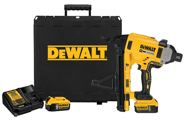The 20 V max XR 1 in magazine cordless concrete nailer kit is built for drywall track installation into concrete and steel substrates. This fully electric nailer operates on the same battery as other DeWALT 20 V max tools and eliminates the need to purchase fuel cells. A field-serviceable driver blade minimizes downtime. Variable power settings, small-profile 1 in capacity magazine and interchangeable nose pieces maximize versatility and convenience. LED worklights make this nailer shine in lowlight conditions. Compatible with DeWALT cordless concrete nailer fasteners in lengths 1/2 to 1 in. Kit includes two 5 Ah batteries, 20 V max charger, standard/drywall nose piece and kit box. Compatible with DeWALT cordless concrete nailer fasteners in lengths 1-1/4 to 2-1/4 in when used with DCN8906 2 in Accessory Magazine.