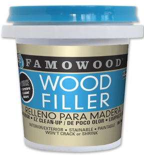 Famowood latex wood filler has the same outstanding qualities of original Famowood, but has very low odor and can be cleaned up with water. Famowood latex filler spreads easily and requires very little sanding to achieve the desired finished look.