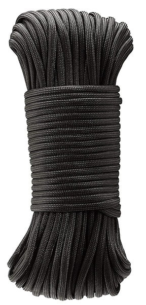 Baron Cord, Working Load Limit: 110 lb, Construction: Paracord, Polyester, Black, 5/32 in Dia, 50 ft L