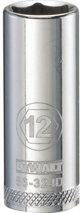 DEWALT DWMT86324OSP Drive Socket, 12 mm Socket, 3/8 in Drive, 6-Point, Vanadium Steel, Polished Chrome