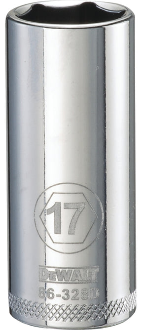 DEWALT DWMT86328OSP Drive Socket, 17 mm Socket, 3/8 in Drive, 6-Point, Vanadium Steel, Polished Chrome