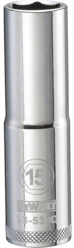 DEWALT DWMT93530OSP Drive Socket, 15 mm Socket, Deep Socket, 3-1/8 in OAL, 1/2 in Drive, 6-Point, Vanadium Steel is backordered and will ship as soon as it is back in stock.