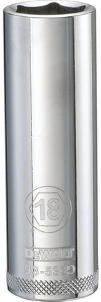 DEWALT DWMT93533OSP Drive Socket, 18 mm Socket, Deep Socket, 3-1/8 in OAL, 1/2 in Drive, 6-Point, Vanadium Steel