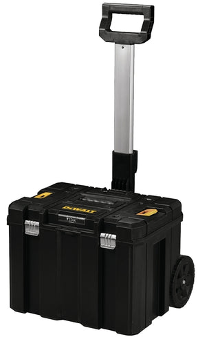 The DeWALT TSTAK mobile storage unit combines a large volume storage tool box with durable 7 in wheels. With rust-resistant metal latches, bi-material top handle and side latches that allow stacking all other TSTAK units on top, this is a great maneuverability solution.
