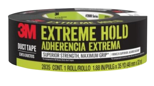 For jobs that require heroic strength, reach for 3M extreme hold duct tape. Backed by the power of 3M science, this heavy-duty tape is designed with super-tough woven material and 2X thicker adhesive layer than other 3M duct tapes, providing maximum durability and a powerful hold. Ideal for your toughest repairs, indoors and outdoors, this all-conditions duct tape is waterproof for a long-lasting hold. It's so easy to apply and doesn't require scissors to use. Simply tear across or lengthwise for an immediate fix. Whether you're bundling lumber at the job site, reinforcing or patching, rely on the extreme strength of 3M extreme hold duct tape.