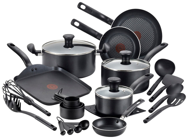 T-fal Cookware Set, Non-Stick, Aluminum, Black, Number of Pieces: 20