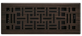 Imperial Art and Craft Floor Register, Projection Size: 1/4 in, Duct Opening Width: 11-3/4 in, Duct Opening Height: 3-15/16 in, Polystyrene/Steel, Oil Rubbed Bronze, 12 in L, 4 in W
