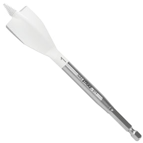 Bosch nail strike wood boring bits are the first wood boring bits to power through wood with nails. The bit features reamer edges made of tough, reinforced steel that cut through up to 30 nails. Each bit has a fully threaded cone tip that pulls it through the wood, offering best in class speed through 2x4s. These bits are ideal for boring clean holes through wood fast to run conduit or pipe. The contoured paddle design also enhances chip removal, contributing to the fast performance. The hex shank with power groove reduces bit slippage in the drill and makes it suitable for use with a variety of drill types, including impact drills. These bits should not be used in a drill press and are not intended for counter boring or doweling.