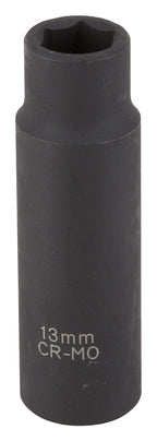 Vulcan MT65802011 Deep Impact Socket, 13 mm Socket, 1/2 in Drive, Deep Drive, 6-Point, Chrome Molybdenum Steel